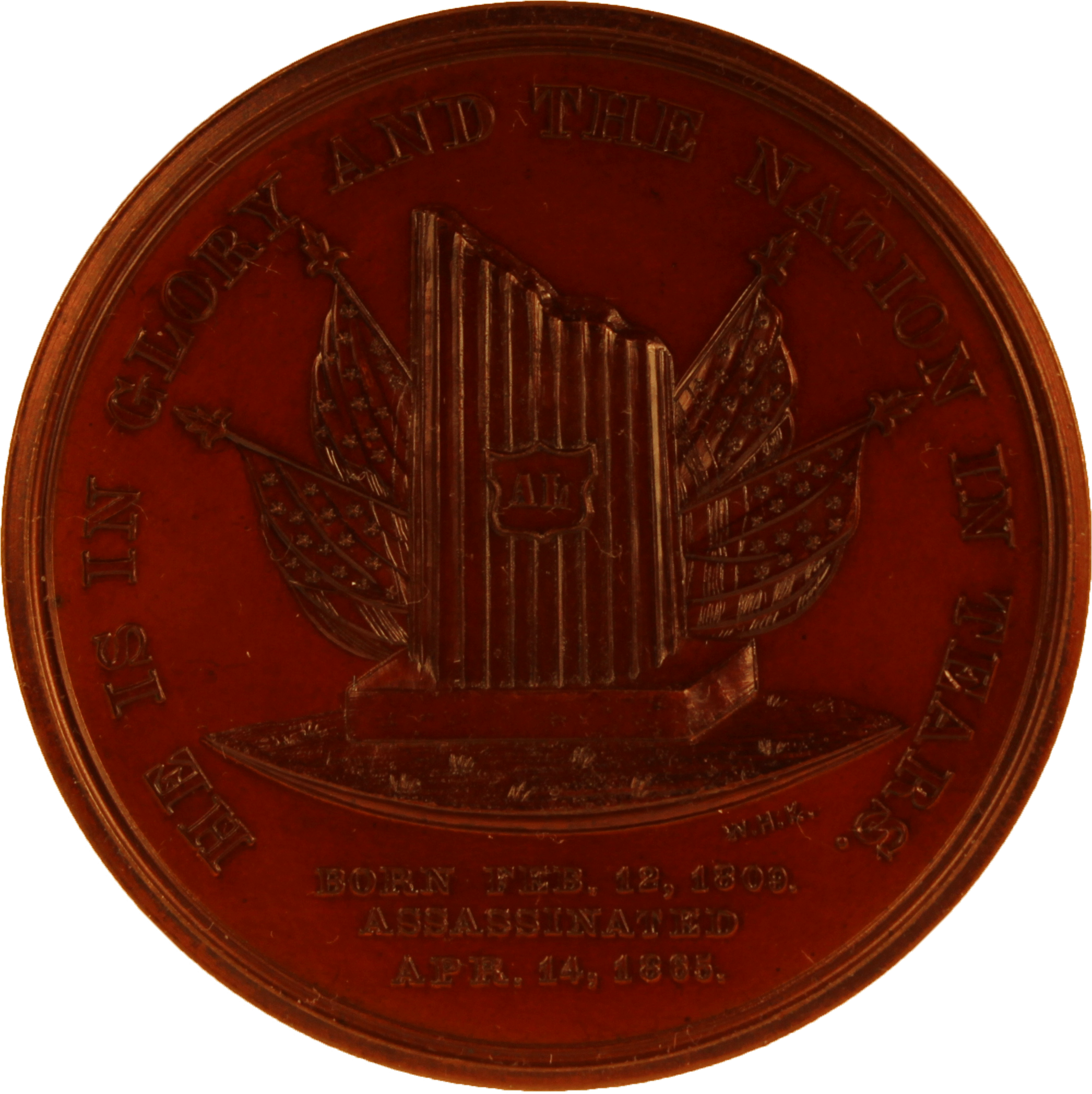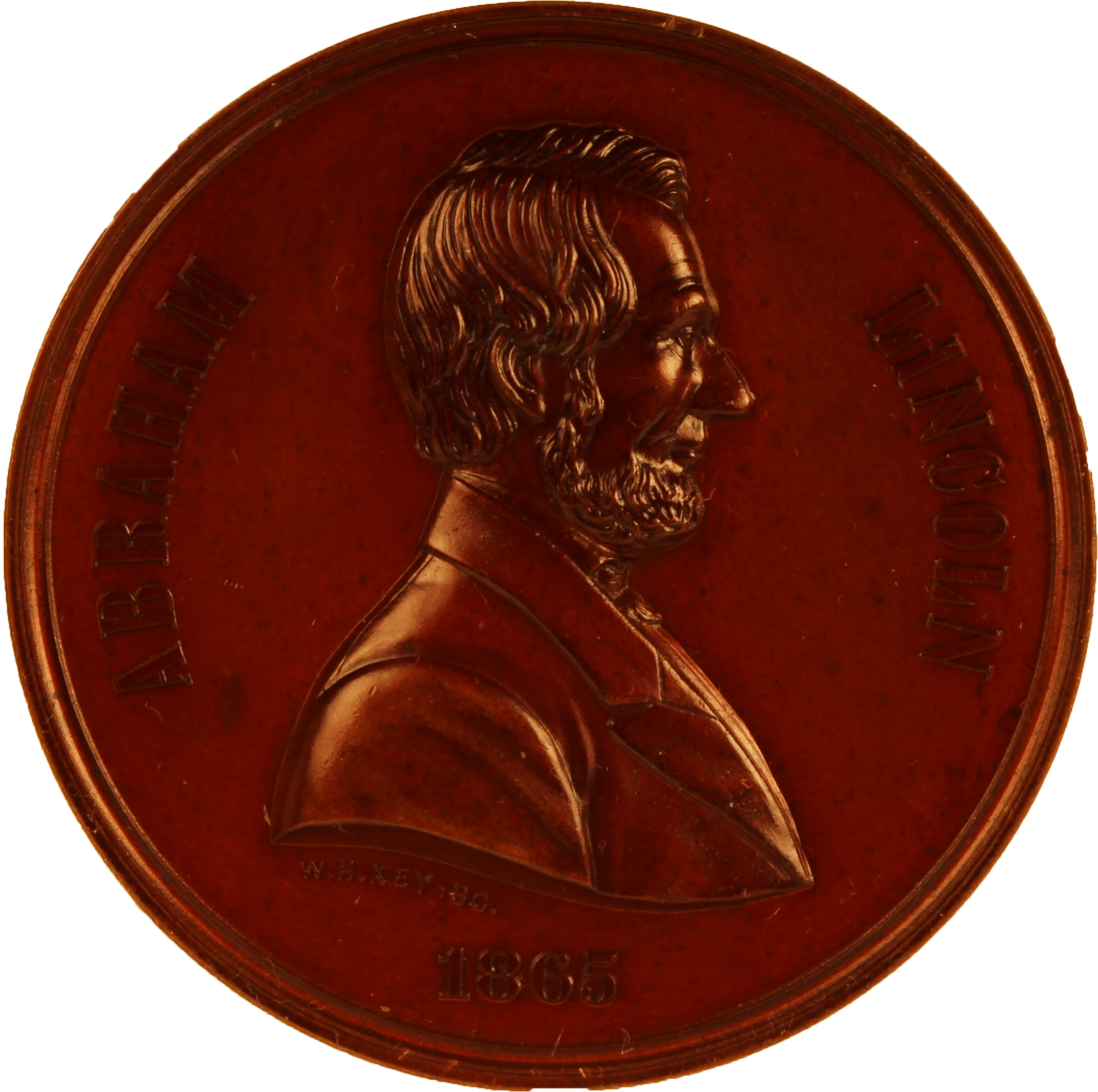The undersigned has published a beautiful medal, two inches in diameter, of Abraham Lincoln, late President of the United States. On the obverse is a perfectly correct bust likeness of the President, and the device, "Abraham Lincoln, 1865." On the reverse "He is in Glory and the Nation in tears," in the centre is a broken column with flags draped, at the base "Born February 12th, 1809, assassinated, April 14th, 1865." The dies for this medal were exectued by the celebrated artist Wm. H. Keys, and has been acknowledged by the Press and distinguished men, as being the most correct likeness that has ever been published in this form. The albitinum, of which these medals are made, is as white and nearly as hard as silver, and can scarcely be distinguished from the same; it is warranted not to tarnish or become dull, but will always keep as fine as when first struck from the dies, if its surface be not handled.